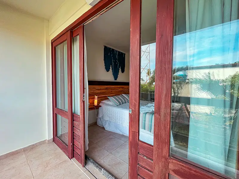 Essa suíte conta com uma varanda com rede e vista para a belíssima praia do Merepe. Está localizada no terceiro andar da nossa pousada e conta com uma cama de casal tamanho queen, podendo receber uma terceira pessoa em cama adicional.