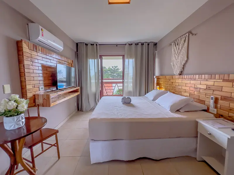 São suítes exclusivas, perfeitas para reservas de Núpcias, Bodas ou qualquer celebração a dois. Ideais para momentos românticos, elas oferecem uma cama King-size e uma Smart TV de 42″, além de uma varanda com rede, onde é possível apreciar a deslumbrante vista da praia.